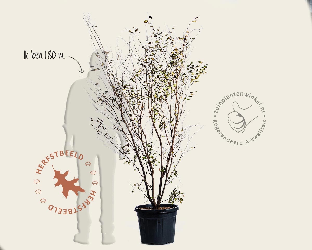 De Zelkova serrata, beter bekend als de Japanse zelkova, is een opvallende en elegante boom die in meerstammige vorm een ware blikvanger is. Deze winterharde boom kenmerkt zich door een losse, brede en halfopen kroon die vaak vaasvormig uitgroeit. Vanuit de basis ontwikkelen zich meerdere stevige hoofdtakken, waardoor de boom een attractieve groeiwijze krijgt die perfect tot zijn recht komt in ruime tuinen, parken of brede straten.